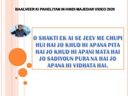 BAALVEER KI PAHELIYAN IN HINDI MAJEDAR VIDEO 2020